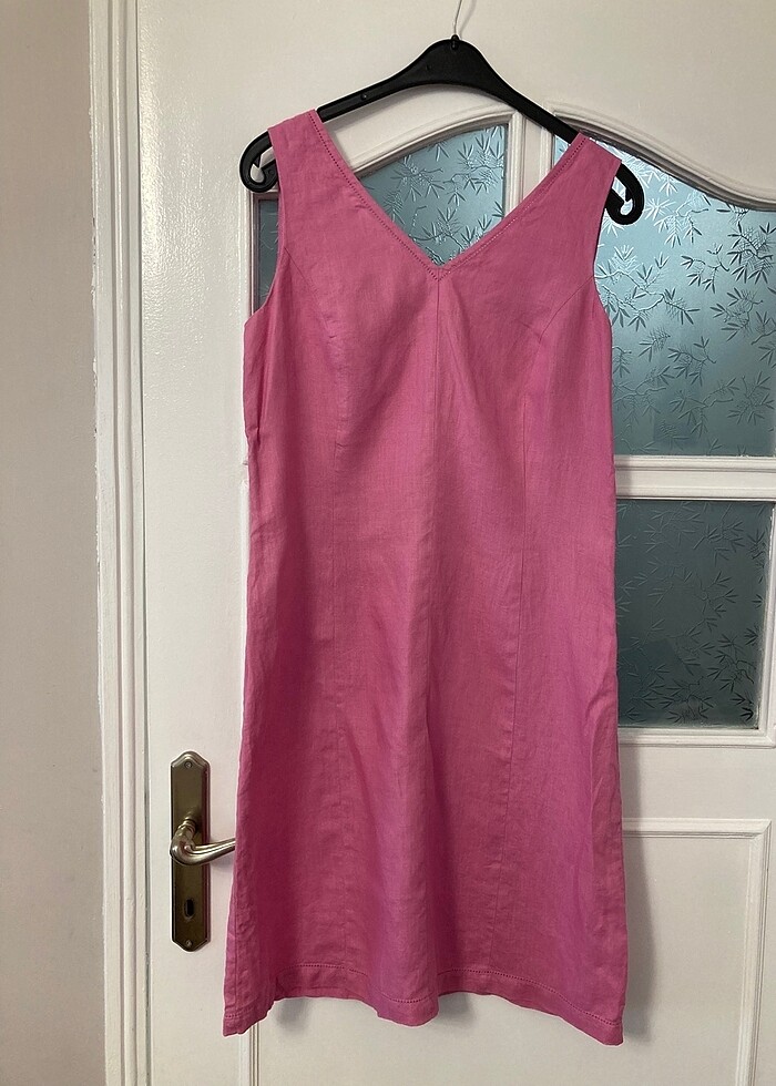 Pembe keten elbise
