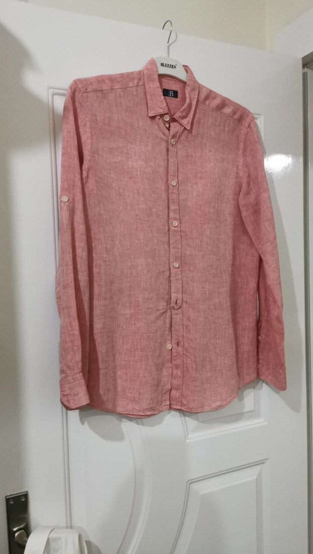 Pembe Keten Erkek Gömlek, Uzun Kollu, Regular Fit 100 keten