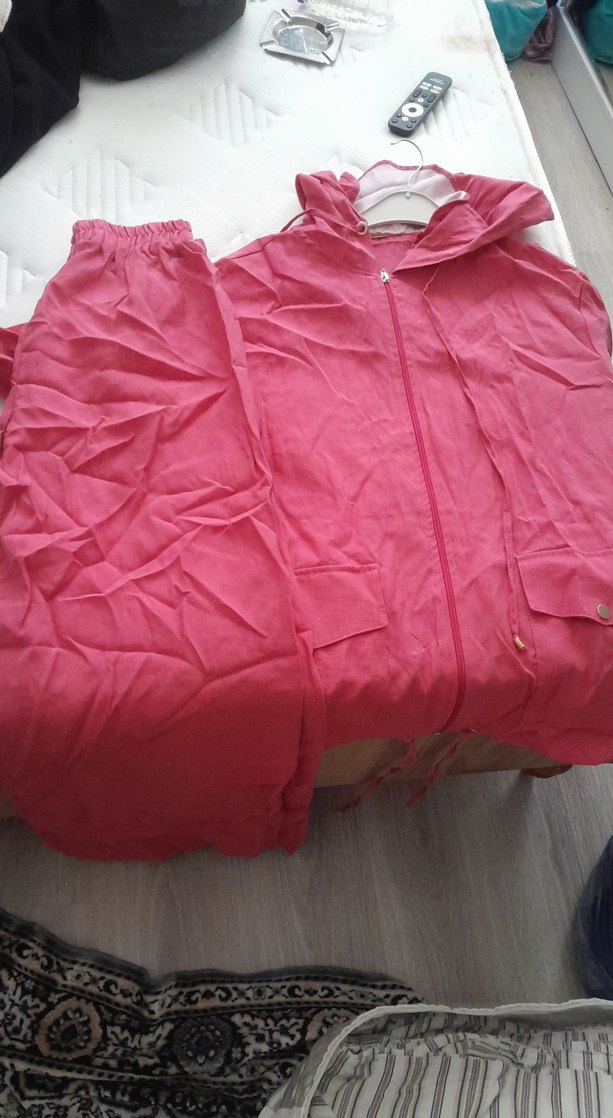 Pembe Keten Kadın Uzun Kollu Yağmurluk