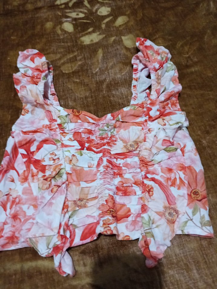 Pastel pembe renkte, yumuşak keten karışımı kumaştan üretilmiş allık. EURS, USS, CAP, MXCH, CN 165/88A beden etiketlerine sahiptir.