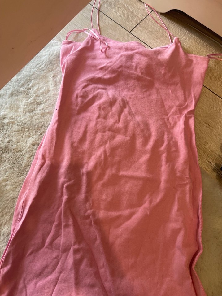 Pembe Keten Midi Elbise
