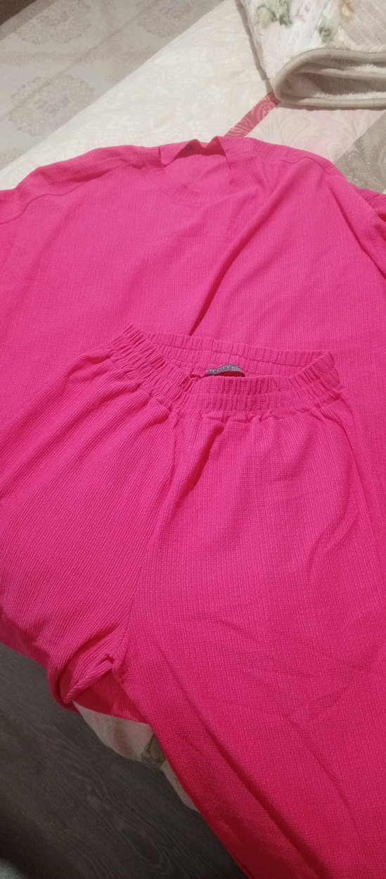 Pembe keten kumaştan, pilili ve midi boyda, rahat kesim kadın pantolon. Renkli ve günlük kullanıma uygun.