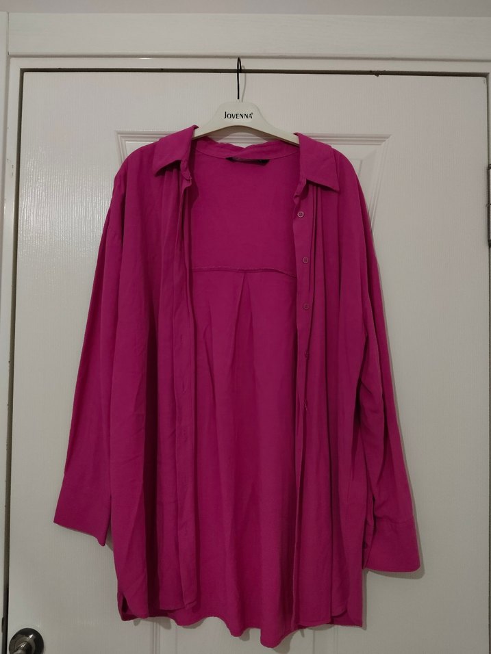 Pembe Keten Salaş Uzun Kollu Gömlek