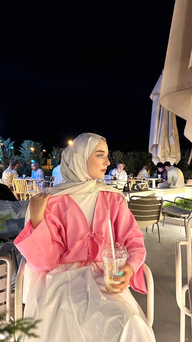 Pembe renkte, drapeli tasarıma sahip bohem tarzında kadın wrap.