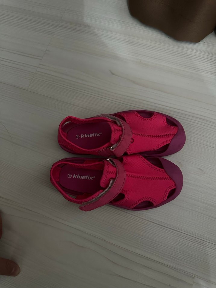 Pembe Kinetix kız çocuk spor sandalet, dolgu topuk ve cırt cırtlı bantlarla rahat kauçuk malzemeden üretilmiştir, günlük sokak stili için uygundur.