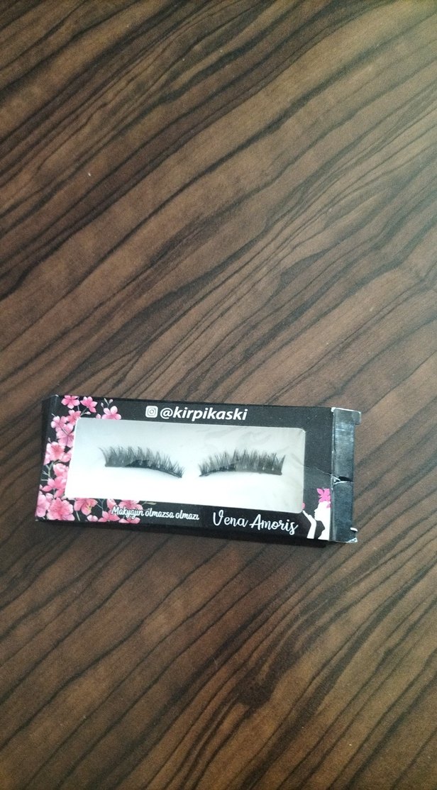 Koyu pembe takma kirpikler, VenaAmoriy markasına ait şık kutuda. Göz görünümünü doğal şekilde güçlendirir.