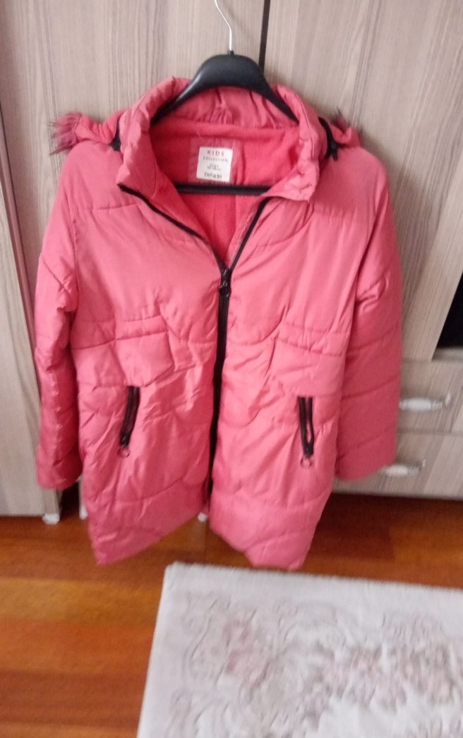 Bu pembe kısa mont, kesimli ve notched yaka detaylıdır. Uzun kollu, fermuarlı ve yumuşak, sıcak tutan kumaştan üretilmiştir.