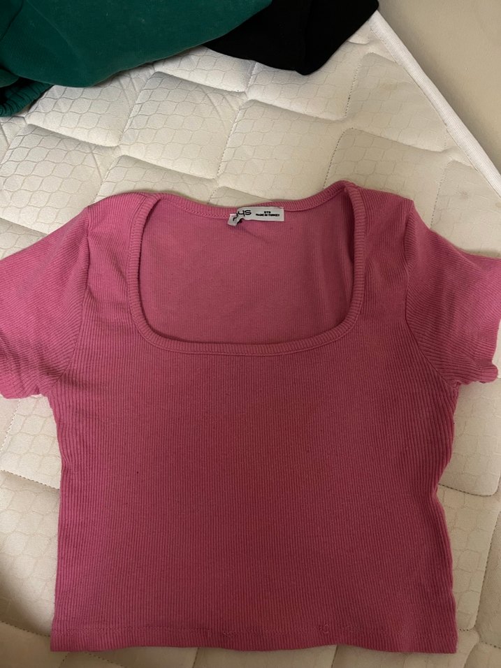 Bu pembe kısa kollu kadın tişörtü, yuvarlak yaka ve dar kesime sahiptir. Sentetik kumaştan üretilmiş, minimalist ve rahat bir gündelik sokak stili sunar.