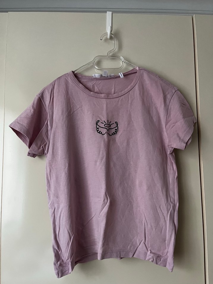 Nefes alabilen keten kumaştan yapılmış, kısa kollu ve yuvarlak yakalı pembe tişört. Minimalist baskısı ve bol kesimiyle rahat bir kullanım sağlar.