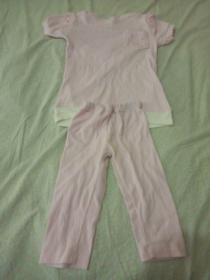 Kısa kollu, yuvarlak yakalı, pastel pembe tonlarında, kız çocuk takım Üstü normal boy, altı midi uzunluktadır.