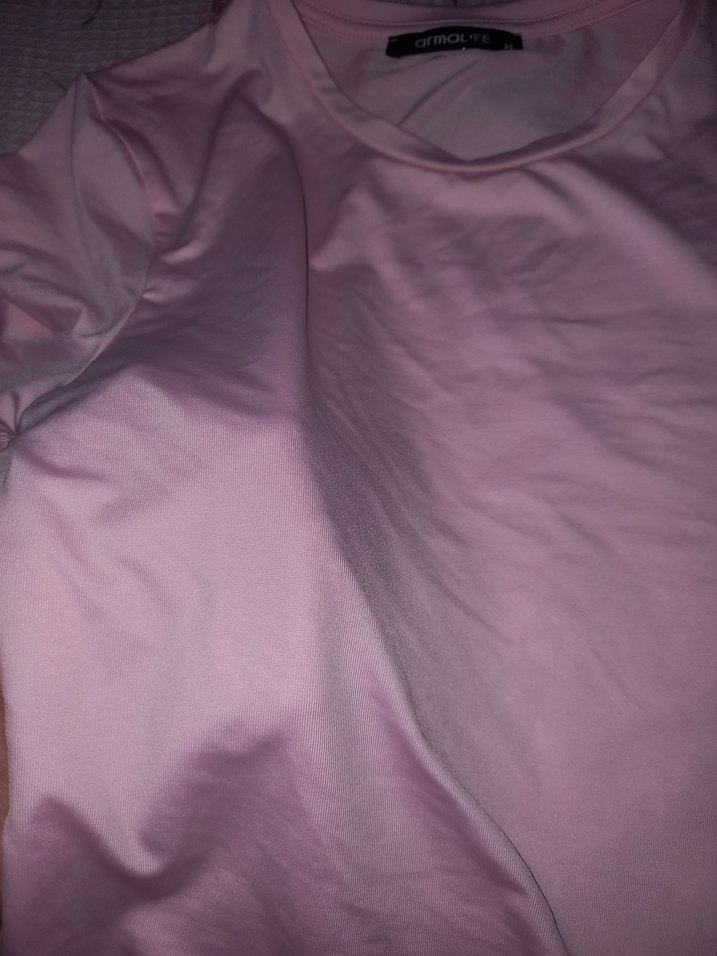 Drapeli, kısa kollu, yuvarlak yaka pembe kadın tişörtü, ipeksi kumaştan ve sportif tarzlar için uygundur.