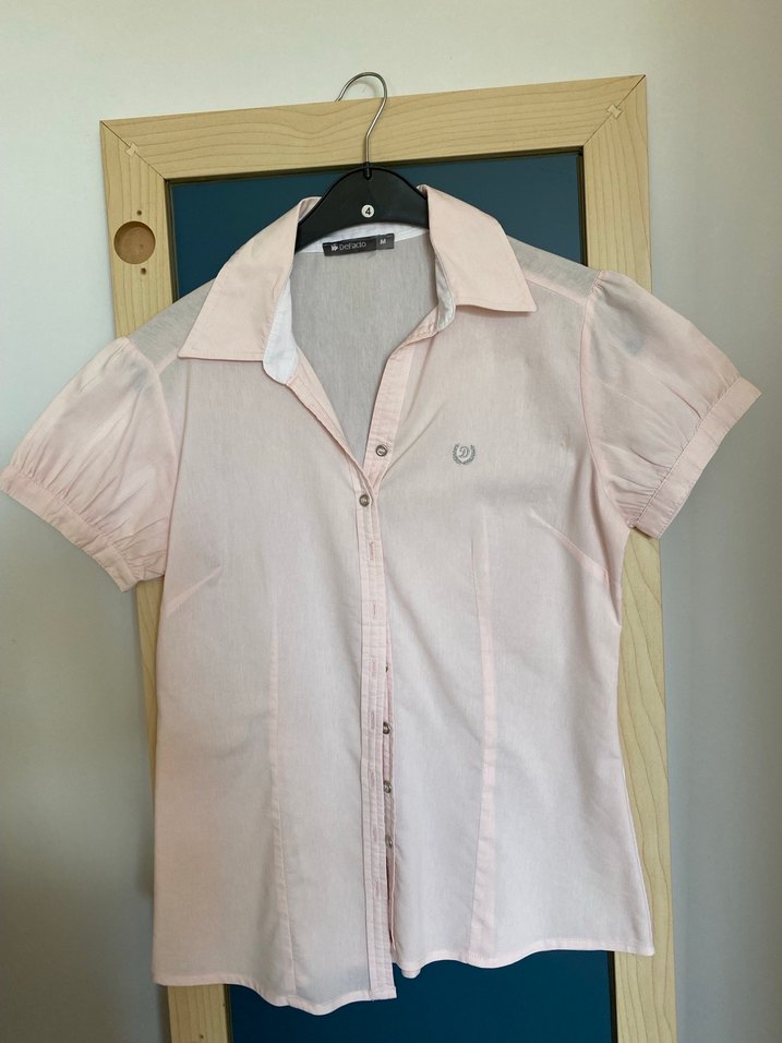 Pembe pamuklu gömlek, kısa kollu, yakalı ve düğmeli tasarıma sahiptir. Normal midi boyu ve regular kesimiyle ofis veya günlük kullanıma uygundur. Sayılı giyilmiş kusursuz bütün ürünler temiz ütülü gönderilir