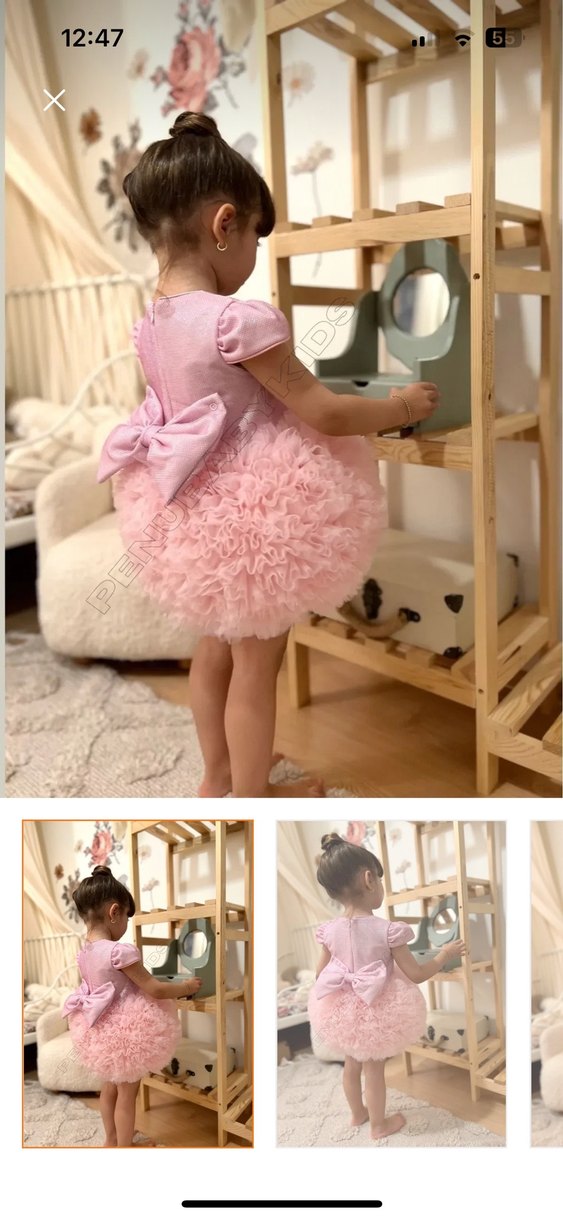 Pembe Kısa Kollu Fırfırlı Klasik Kız Elbisesi