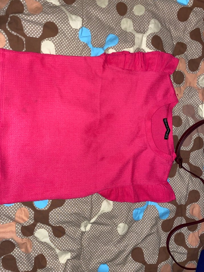 Pembe Kısa Kollu Fırfırlı Tişört