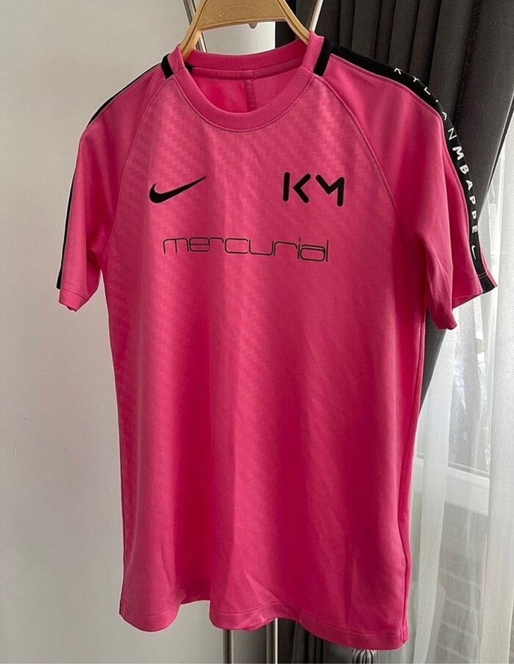 Pembe renk, kısa kollu, bisiklet yaka erkek spor tişörtü. Sentetik kumaştan üretilmiş, baskılı detaylara sahip, sportif ve şık bir görünüm sunar. Üzerinde "mecunial" yazısı bulunur. l beden fakat dar kalıp