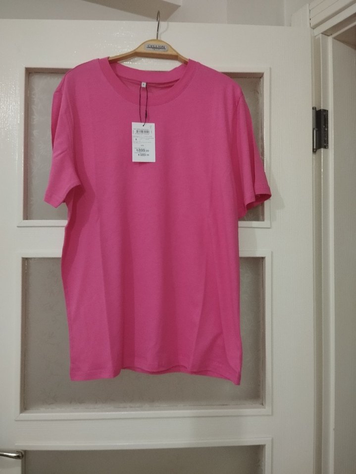 Bu pembe kısa kollu kadın tişörtü, yuvarlak yakalı ve bol kesimdir. Yumuşak sentetik kumaştan üretilmiş, günlük kullanıma uygun rahat normcore tarzda bir parçadır.