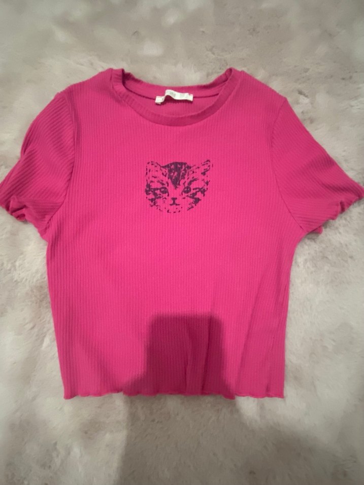 Pembe Kısa Kollu kadın tshort kedi detaylı
