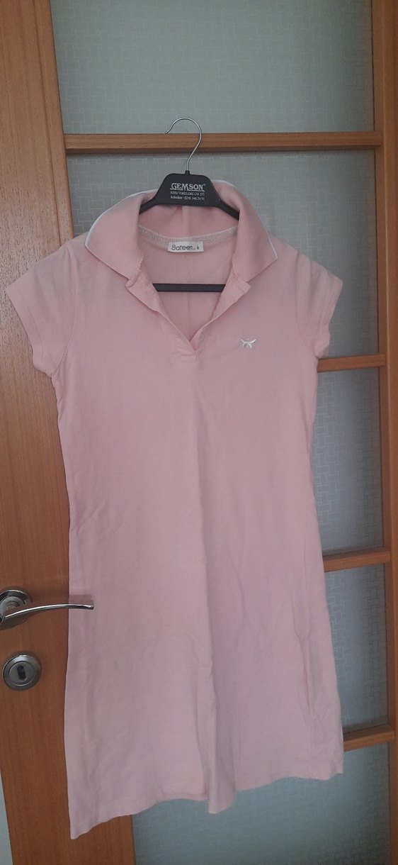 Pembe renkte, kısa kollu ve yakalı, normal boy midi elbise Yumuşak sentetik kumaştan, gündelik rahat ve şık bir tasarım sunar. Desensiz ve normcore tarzda, trend casual görünüm sağlar.