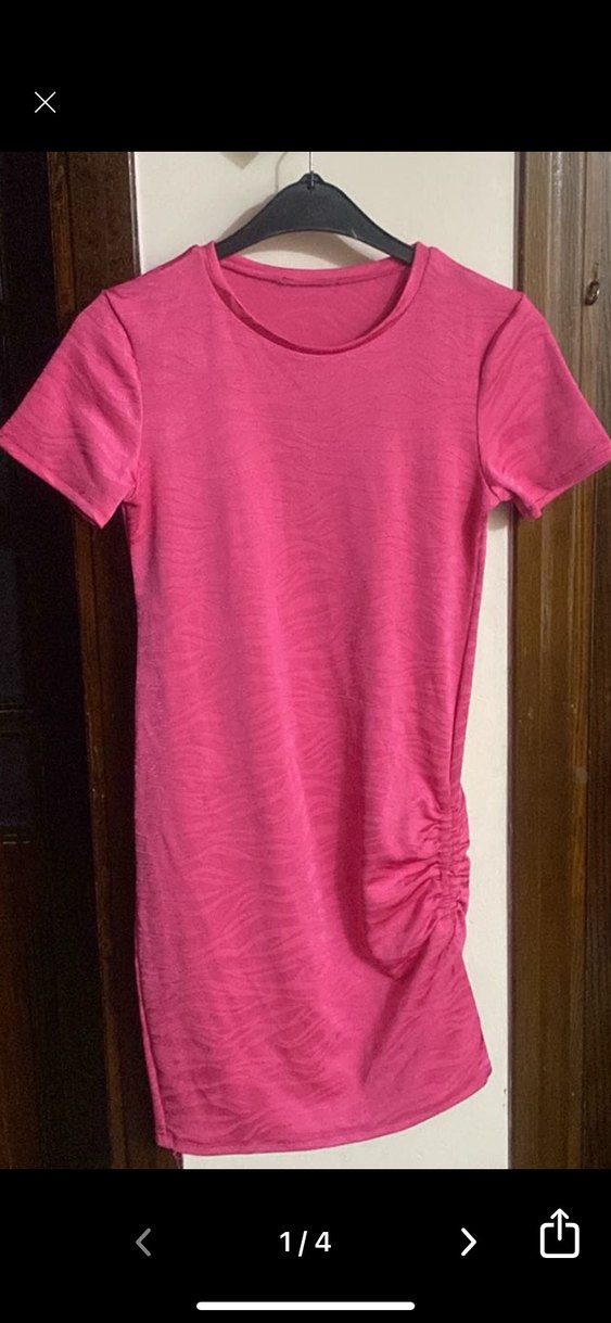 Pembe Kısa Kollu Midi Kadın Elbise S beden