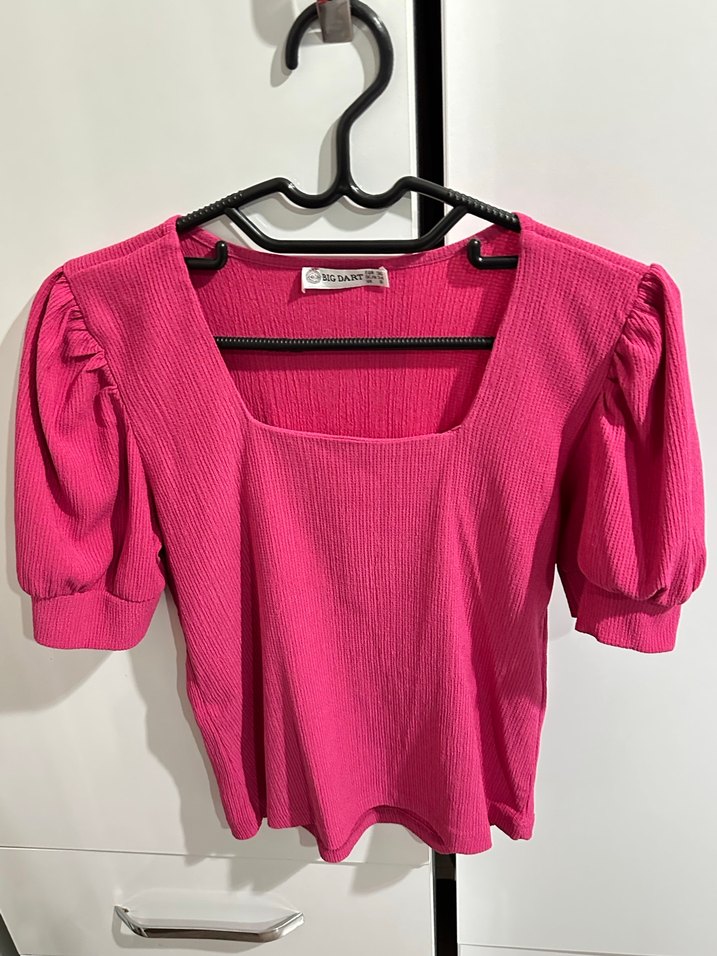 Ürün hiç kullanılmadı,Pembe, kısa kollu ve kare yaka detaylı, vücuda oturan mini bluz. Yumuşak sentetik kumaştan, renkli ve günlük sokak stiline uygun.