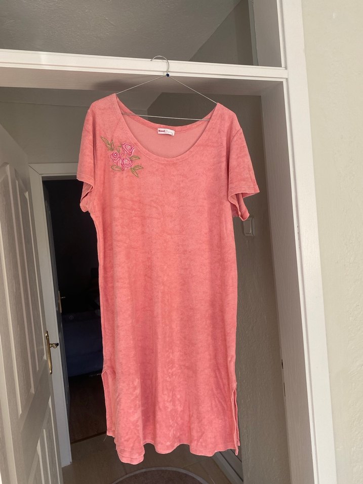 Pembe renkte, kısa kollu ve yuvarlak yakalı . Yumuşak hafif batik desen ve çiçek işlemeli, bol kesim ve salaş bohem tarzda günlük kullanım için uygundur.