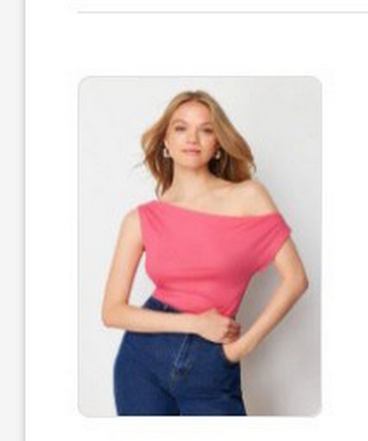 Pembe, kayık yaka ve kolsuz, salaş kesim kısa uzunlukta yumuşak denim kumaştan yapılmış bluz. Günlük kullanım için rahat şıklık sunar.