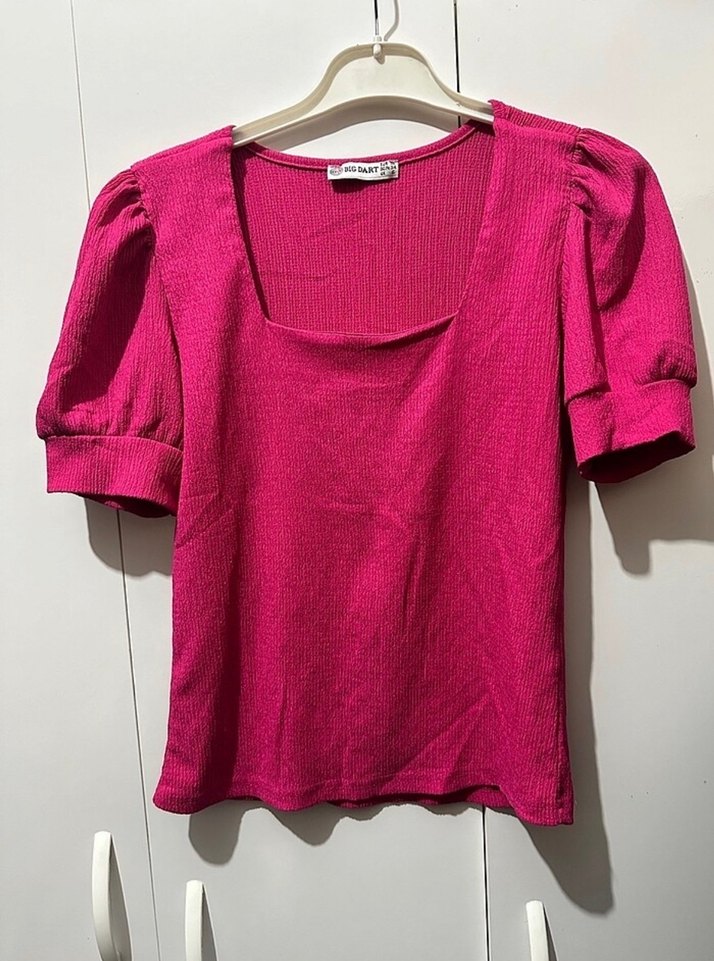 Pembe, kısa kollu, triko dokulu ve yuvarlak yakalı, vücuda oturan kısa uzunlukta bluz. Günlük sokak stiline uygundur. 1 kere giydim Marka temsilidir
