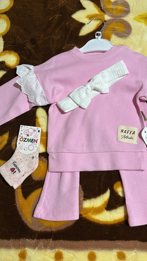 Pembe Kız Bebek Fırfırlı Uzun Kollu Takım