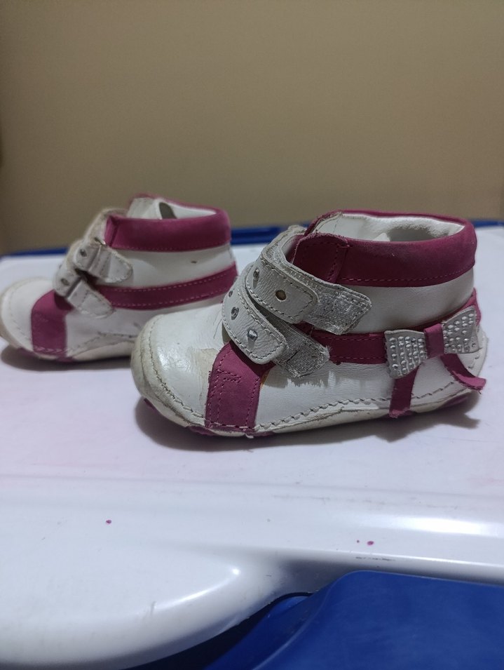 Pembe renkli, tokalı, küçük fiyonk detaylı kız bebek ilk adım ayakkabısı, sokak modasına uygun.