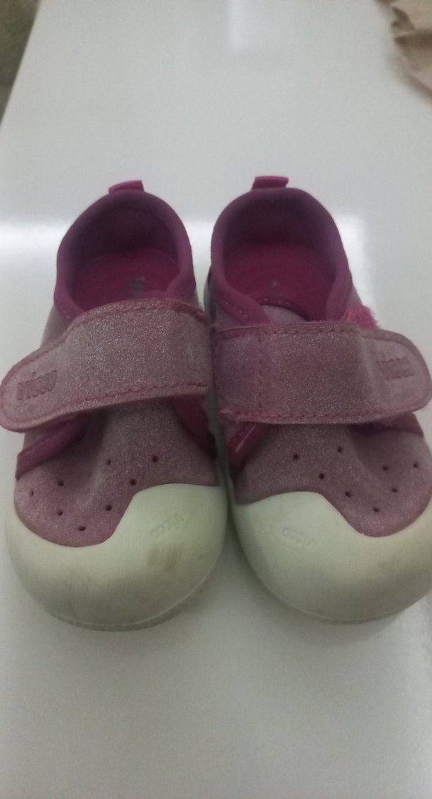 Pembe kauçuk kız bebek ilk adım ayakkabısı, renkli görünüme ve kolay kullanılan cırt cırtlı kapamaya sahiptir. Normcore tarzda sade tasarım.
