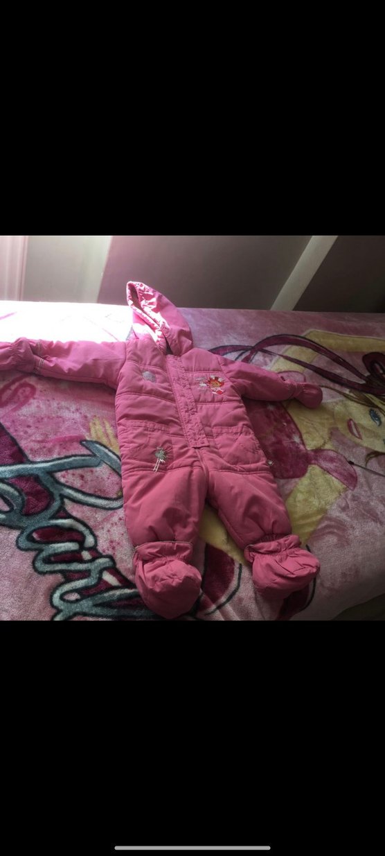 Pembe renkte, kapüşonlu ve tokalı kız bebek tulumu. Notch yakalı ve yumuşak, sıcak tutan kumaştan üretilmiştir. ❄️