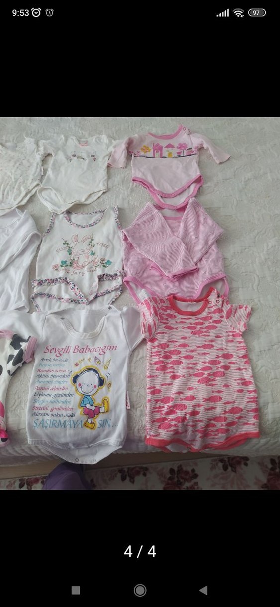 Pastel pembe renkli, kısa kollu, yuvarlak yakalı, dantelli kız bebek body. Üzerinde "VASIRMA" ve "Segili Babacigm" yazılı baskı bulunur. yeni dogandan 1 yaşa kadar
