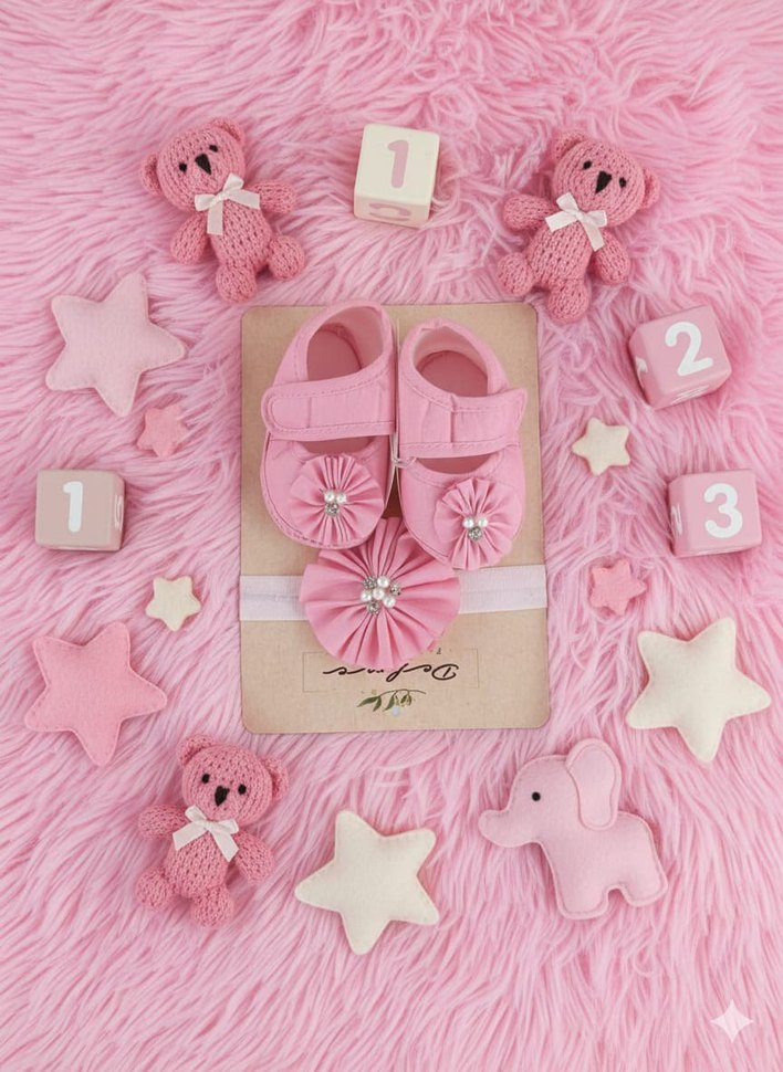 Pembe Kız Bebek Patik Ve Saç Bandi