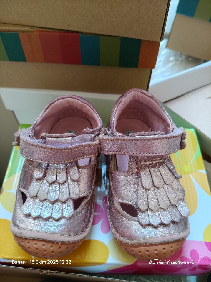 Pembe parlak renkte, tokalı çırtlı kauçuk kız bebek ilk adım ayakkabısı. Bohem tarzında, yumuşak ve rahat tasarıma sahip. 20 no.