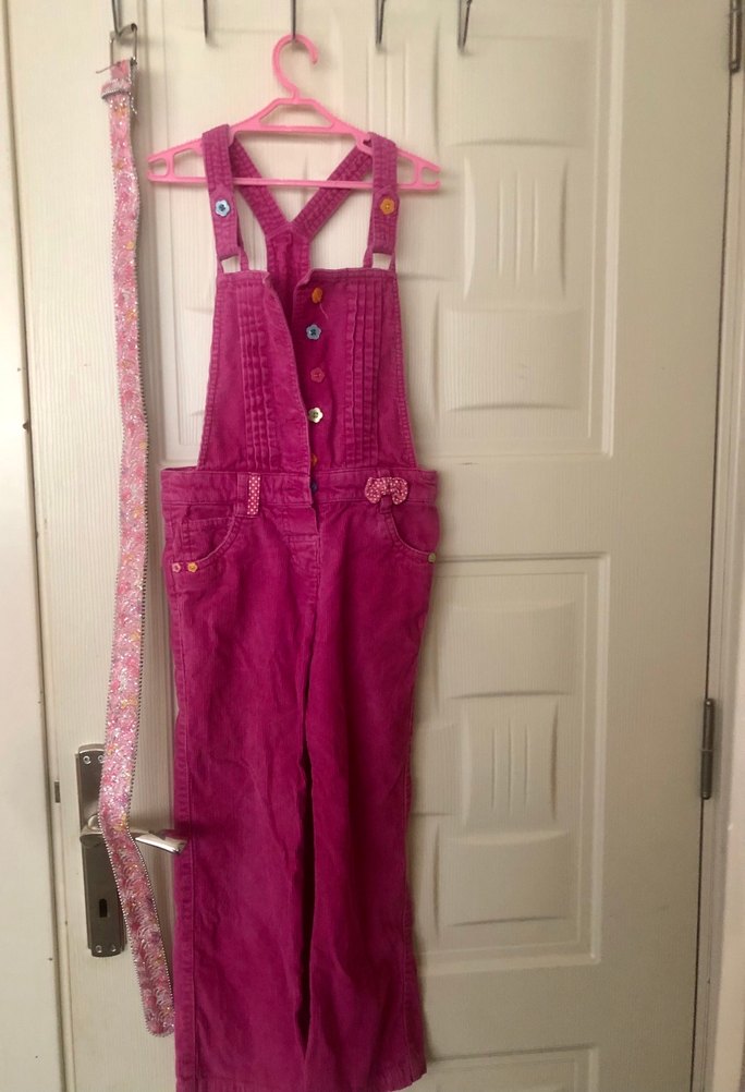 Pembe renkli, askılı, tokalı kız çocuk tulumu. Renkli batik desenli, tekstil malzemeden yapılmış, bohem stilinde ve rahat kesim. Sorunu yok lc Waikiki marka 6-7 yaş kemer hediyeli✅ slopet tulum pembe renk ❤️ 122 cm 7 yaşa denk geldiği için 7 yaşı işaretledim 6 yaşa bir tık büyük gelebilir çünkü ❤️