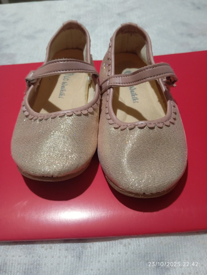 Pembe renkte, tokalı bantlı kız çocuk babet ayakkabısı. Yumuşak kauçuk malzemeden yapılmış, pastel ve desensiz sade tasarım.