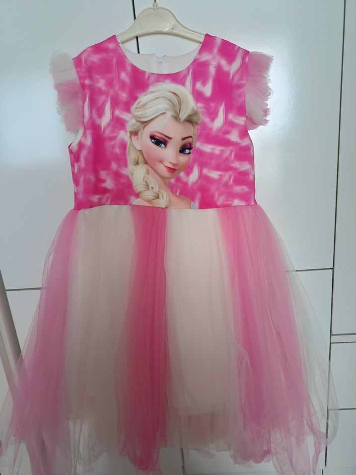 Pembe Kız Çocuk Baskılı Tül Elbise