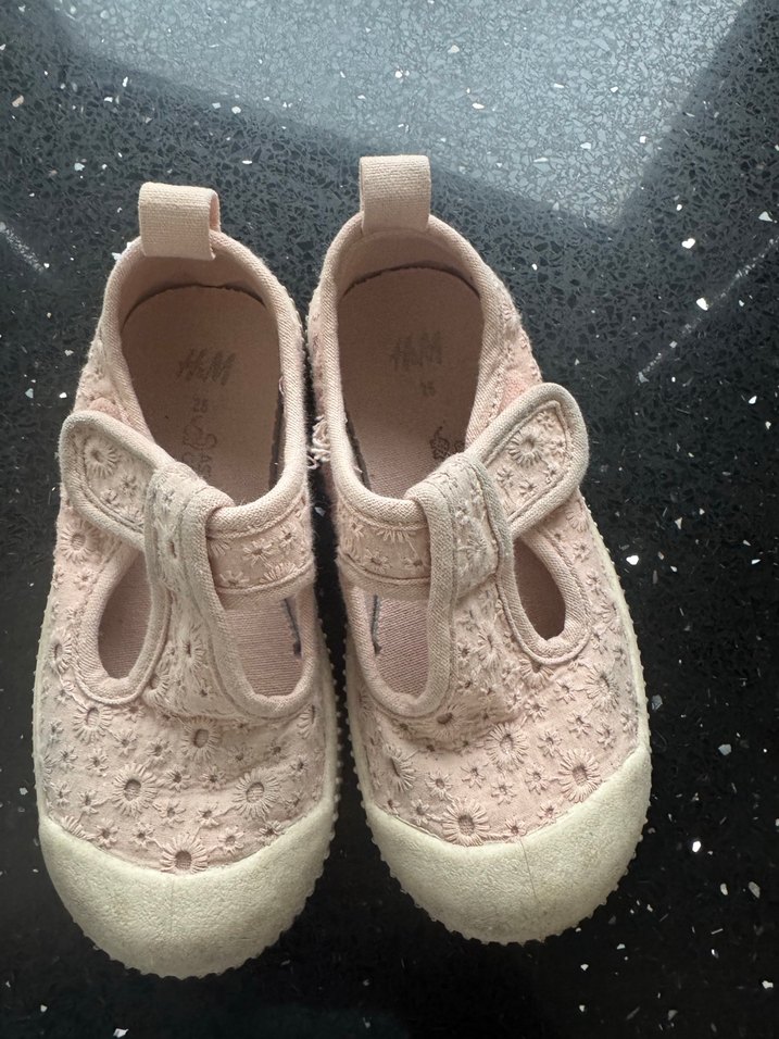 Yumuşak pastel pembe renkte, dantel detaylı ve kauçuk tabanlı kız çocuk spor ayakkabısı, sade ve rahat tasarım.25 numara