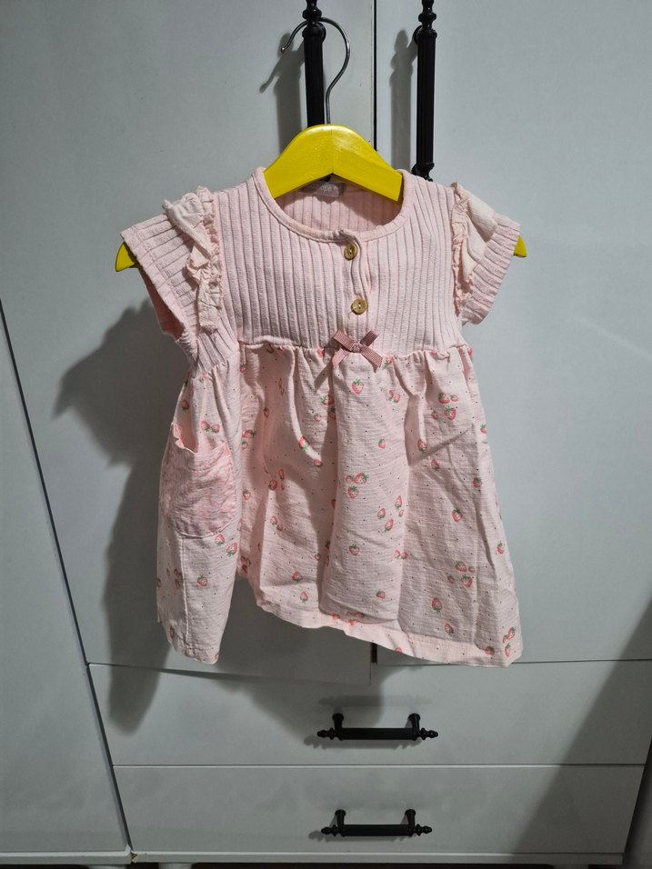 Pembe Kız Çocuk Düğmeli Elbise 1 yaş