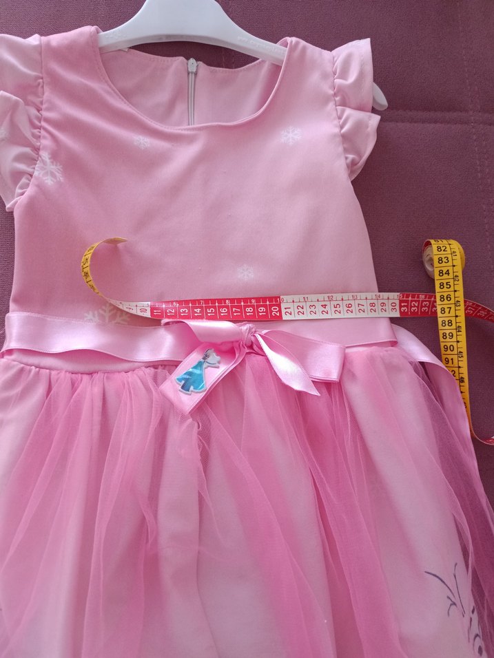 Pembe renkli, fitted kesim kız çocuk elbisesi, askılı kollu ve yuvarlak yakalıdır. Renkli baskılar ve fırfır detaylarıyla, yumuşak sentetik kumaştan üretilmiştir. fotoğraf ta göründüğü gibi dir.marka temsilidir.