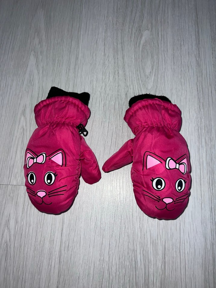 Pembe Kız Çocuk Eldiveni, Kürklü, Baskılı