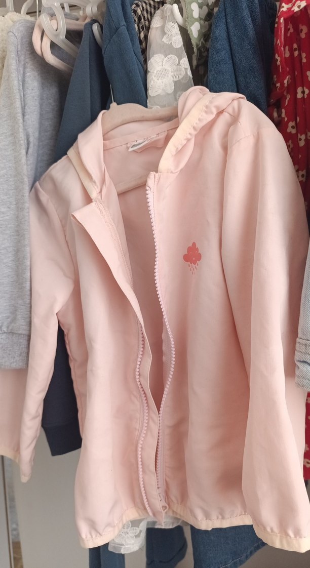 Bol kesim, pembe kız çocuk yağmurluğu, kesik yaka ve fermuarlı ön cephelidir. Yumuşak fleece kumaştan yapılmış, 2 3 defa giyildi temiz ürün