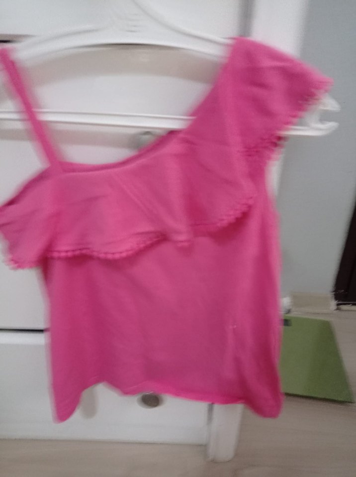 11 .12 yaş LC waikiki Pembe, askısız, fırfırlı detaylı kız çocuk bluzu, bol kesim ve yumuşak sentetik kumaştan üretilmiştir. Rahat ve şık bir sokak stili ürünü.