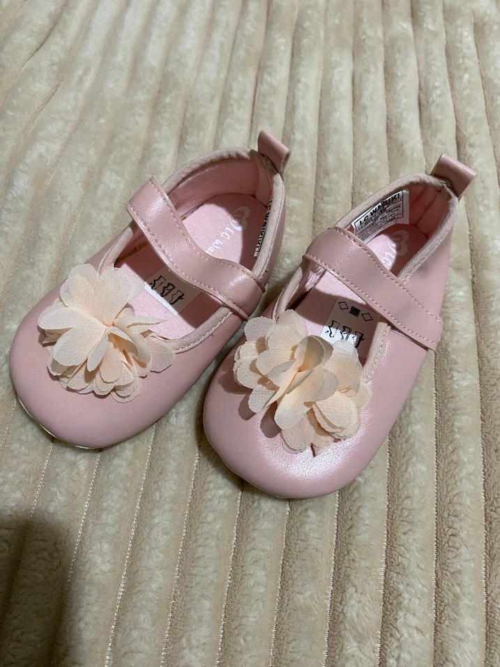 Pembe pastel renkte, çiçek desenli fırfır detaylı kız çocuk babet ayakkabısı, klasik şıklık ve normcore tarzını bir arada sunar.