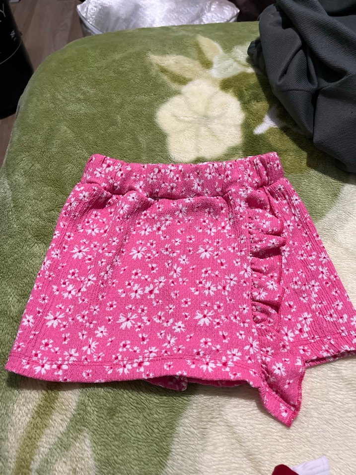Pembe renkli, yumuşak kumaştan yapılmış kız çocuk eteği, salaş kesim ve fırfır detayına sahiptir. Renkli batik desenlidir, günlük stil için uygundur.
