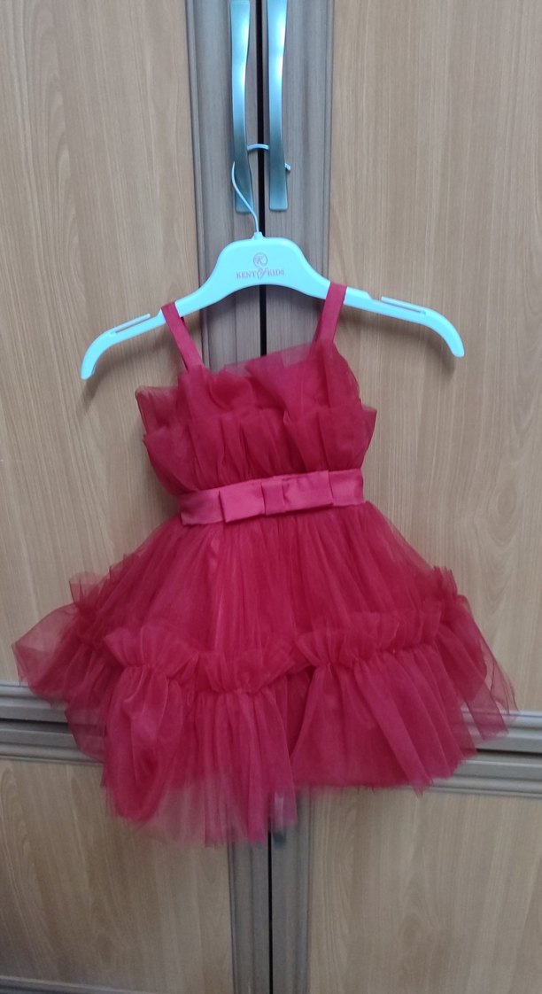 Pembe, fırfırlı ve straplez yaka kız çocuk elbisesi. Yumuşak sentetik kumaştan, kemer detaylı ve bohem tarzda.