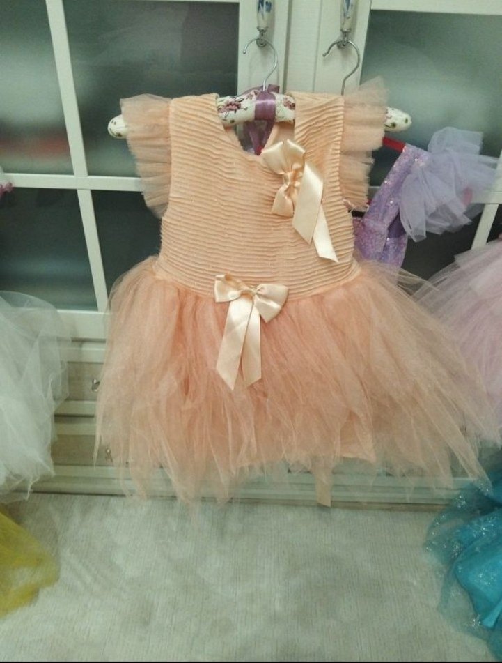 Pembe renkli, fitted kesim kız çocuk elbisesi. Kayık yaka ve askılı kolları, fırfır detayları ve saten fiyonklarıyla bohem tarzda şık bir modeldir. sorunsuz yakasındaki tokasıdır