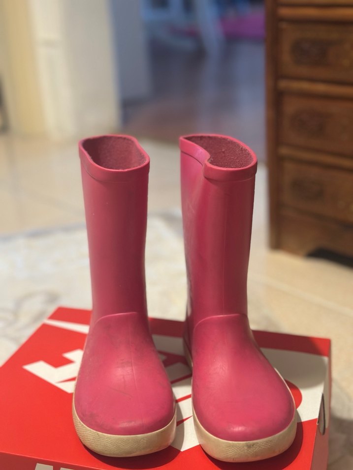 Pembe kauçuk kız çocuk çizmesi, sade ve renkli tasarımıyla zahmetsiz şıklık sunar.