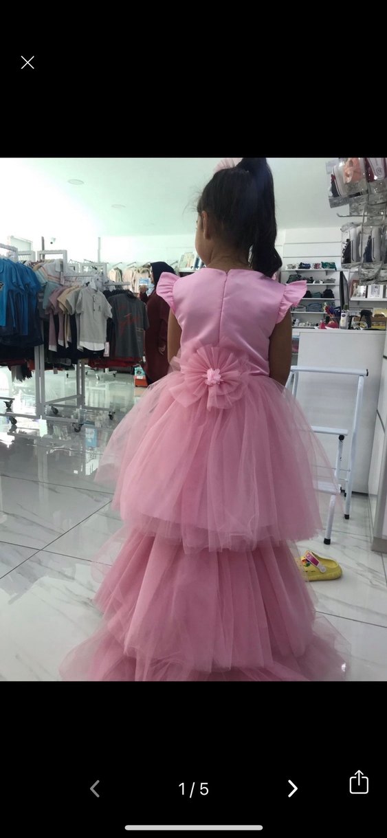 Pembe Kız Çocuk Kat Kat Tül Abiye Elbise