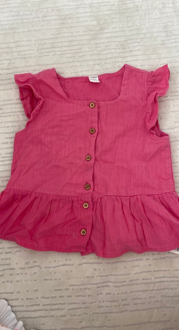 Pembe Kız Çocuk Keten Düğmeli bluz